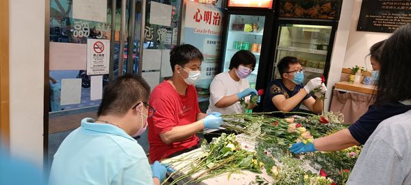 心明治小食店本週舉辦花藝工作坊,學員善用工餘時間參加,學習處理花材、包花及插花技巧。過程中,大家互相交流輕鬆愉快,有初次接觸花藝的學員感到新鮮有趣。運用新鮮的花材,在工作人員指導下發揮創作,當看到自己作品完成時,感到開心及有滿足感,有的學員表示要送給媽媽及和家人一同欣賞,大家都表示非常開心。