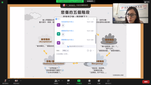 原定於現場之講座,為響應政府的防疫指引,減少人群聚集,但希望能繼續為家長提供情緒的支援,中心接受挑戰,嘗試新的舉辦方式,改為線上講座。這是中心與導師首次的合作,也感謝家長們的積極參與,線上參加的家長有三十六人次,參與線上互動問答的家長有十七人次。全新的嘗試令中心與導師都得到寶貴的經驗,也因線上舉辦方式而增加了參加者的名額,能惠及更多有需要之家長的參與。