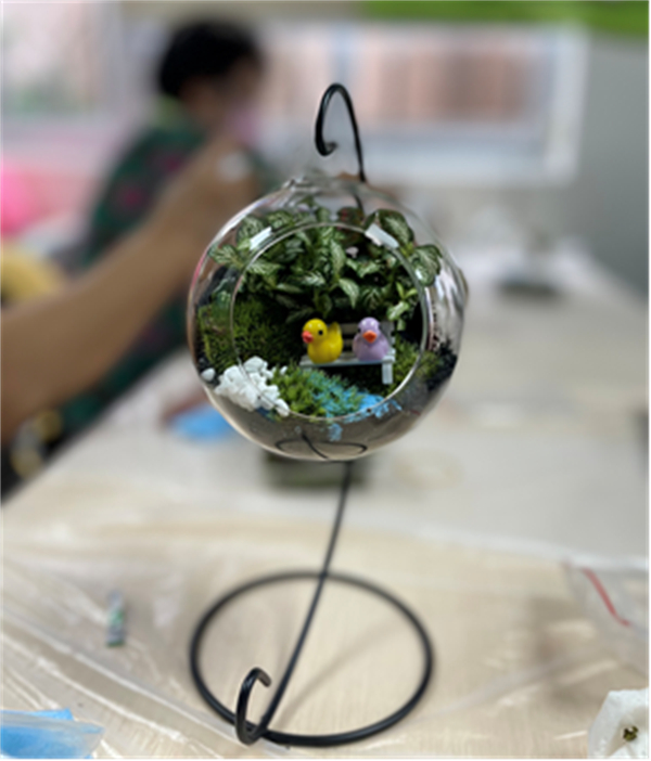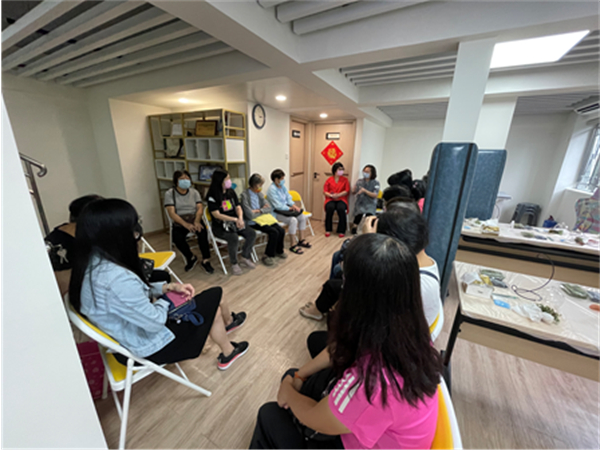 是次分享會邀請參加了不同工作坊及小組的家長參加是次系列活動的總結及回顧;是次照顧者系列活動嘗試與以往不同的小組及工作坊形式介入,從家長的內心開始種下種子,當中不但讓家長們能了解到減壓的方式及途徑各有不同,從中也能學以致用;在分享會中,家長們樂意地分享自己與孩子的生活及曾經所面對的困境,家長們還會將小組中所學習到的知識運用在自身的例子上與一眾家長分享;再者家長也會分享不同的身教方法;分享會中大家暢所欲言,讓彼此成為同路人;分享會的下半場讓家長們體驗種植生態瓶,開始前工作員讓家長們懷著愛自己,善待自己的心,把生態瓶喻為自己,讓家長們花時間在自己身上,同時透過種植植物,使家長們每天也能花時間打理,在忙碌的生活中透過打理植物得到放鬆的時間,另一喻意為讓家長們看到生態瓶便能回想起小組或工作坊中所學習到的知識與技能;