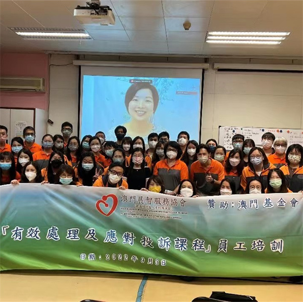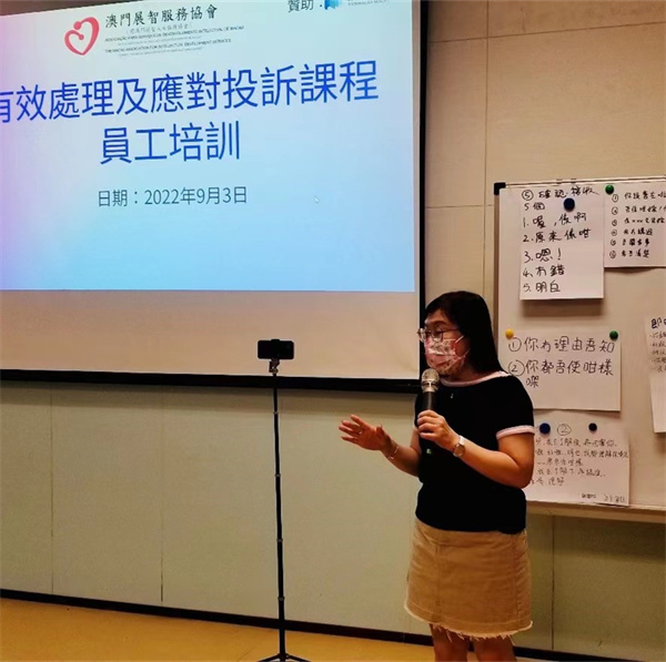 澳門展智服務協會(前澳門弱智人士服務協會)為加強機構員工在服務上面對投訴個案的處理手法,敏銳觸角及溝通技巧,以同理心瞭解及體會服務使用者的情況與需要,有技巧地處理投訴情況。於日前在啟智學校舉辦有效處理及應對投訴課程員工培訓,是次活動參與人數有51人,活動得到澳門基金會贊助。