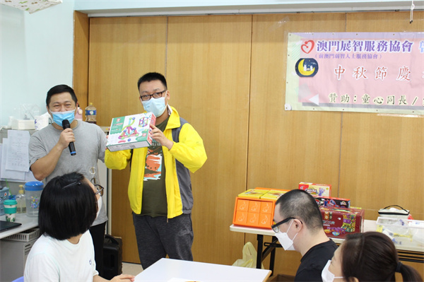 澳門「童心同長」與「雲南茶商會」2間機構義工團體一同於9月9日上午到澳門展智服務協會屬下啟康中心拜訪,該兩個團體贊助了啟康中心是次“歡慶中秋節佳節”的所有活動經費,善心義舉令所有工作同仁及學員皆感受到來自社會大眾的溫暖、關懷。