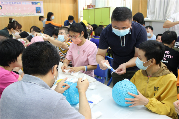 義工們與學員共同動手製作屬於自己的手工燈籠,並進行互動拼圖遊戲,活動在開心、融洽的氣氛之下順利完成,大家在合照之後為這個中秋節慶祝會畫下完美的句號。