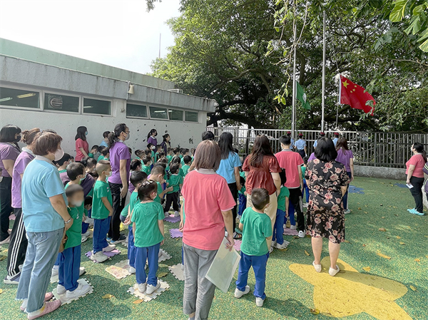 活動分為升旗儀式演示及專題講座兩部分。升旗儀式於學校操場舉行,護旗隊護送國旗和區旗到旗杆位置,隨著國歌奏起,眾師生肅然起敬,專注地面向緩緩上升的國旗與區旗上。儀式結束後,在學校多功能室進行專題講座,過程中觀賞升旗隊故事短片,讓學生除了在日常課堂學習外,能更深刻地認識國旗、國歌、區旗,以及升國旗的禮儀與意義,從而建立對國家的歸屬感,在進行問答遊戲時學生們顯得十分踴躍投入。