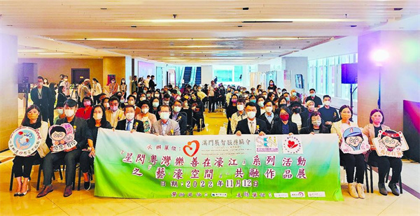 澳門展智服務協會聯同澳門特殊需要學生協進會、澳門民康精神健康促進會,於11月12日下午2時假「澳門百老滙TM」M層展廳舉辦「藝‧濠空間』-共融作品展開幕禮,中央人民政府駐澳門特別行政區聯絡辦公室社會工作部陳鍵三級調研員、澳門基金會區榮智行政委員會委員、社會工作局蘇志群康復服務處處長、及文化局澳門藝術博物館袁紹珊館長等政府代表,支持單位銀河娛樂集團公共關係-企業社會責任冼凱雯高級經理,以及澳門書法院馬騰副院長、澳門競新書畫學會吳彩霞會長、澳門中國書藝會伍劍佐理事長主持剪綵儀式,文化團體代表,及一眾復康機構代表等出席。