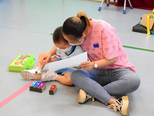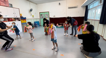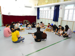 為了加強親子互動和提升幼兒的探索、專注和社交等多元發現,中心舉辦親子音樂工作坊。課堂以認識及探索不同的樂器、鼓類拍奏、音樂輔助之感統活動(觸摸和感受不同樂器的材質、聆聽不同樂器以敲打、按壓的方式發出的聲響),肢體律動(帶領幼兒按歌詞進行大動作的跳躍和擺動等)、 團體音樂遊戲(彩虹傘、絲巾火車)、親子音樂活動、 放鬆活動-聆聽音樂等課堂內容,導師亦會因應幼兒當天的情緒和狀態即時進行整調,家長們也投入其中,和子女們玩得不亦樂乎!