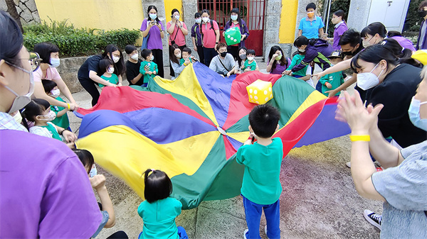 活動使用團體遊戲——彩虹傘作開始,以組別為單位執行指令及進行彩虹傘大風吹活動,學生與家長均十分投入參與,完成團體遊戲後更安排了闖關遊戲,透過找尋相中地點讓學生遊覽二龍喉公園、可愛動物園區或松山景點防空洞、東望洋、炮台等,有不少家長對於首次遊覽東望洋燈塔表示興奮,活動中如遊客般拍攝景點並為學生拍照留念,完成活動的學生均獲禮物乙份,整個活動在充滿歡樂的氣氛下完滿結束。