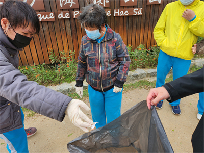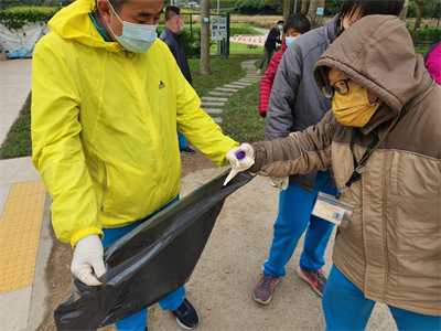 市政署近期優化黑沙海灘公園後側土地,設臨時綠化休憩空間,分為越野車場、竹林區、觀賞植物區等,吸引人們走入大自然懷抱,舒展身心。因此中心組織服務使用者到臨時綠化休憩區遊玩,感受大自然,認識不一樣的澳門。休憩區有一大片綠油油的草坪,服務使用者在草地上任意嬉戲遊玩,場面熱鬧愉快,大家亦不忘拍攝留念,記錄這愉快的一天。在欣賞大自然的過程中亦不忘保育環境的重要性,在活動結束後,服務使用者帶上手套清理公園的垃圾,回復公園應有的美麗風貌。