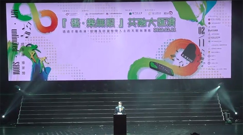 澳門展智服務協會昨日假澳門百老匯舞台舉行“藝 · 樂無限”共融大匯演,冀透過活動展示特殊人士的天賦及潛能,推動社會關注自閉症及精神康復者。