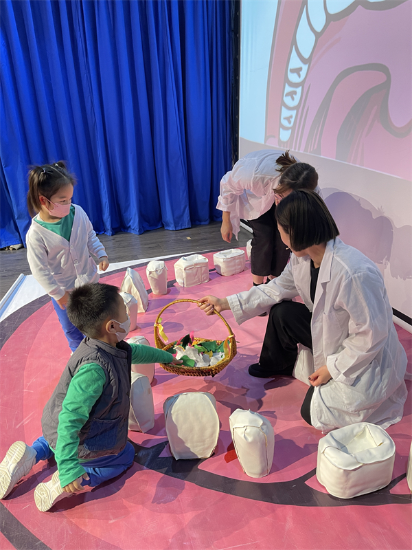 學生正在參與「決戰小芽蟲」話劇中的遊戲環節
