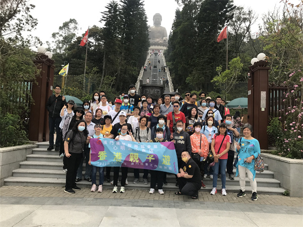 澳門展智服務協會屬下心明治小食店於4月15日組織五十三名學員及家長舉辦「香港親子遊」活動,乘搭港珠澳大橋穿梭巴士前往香港,欣賞沿途美麗的風景及感受大灣區交通網絡發展帶來的便利。到達香港後,一同乘坐昂坪360纜車,從車箱內俯瞰香港美景,並一同遊覽饒富中華特色的昂坪市集;享用午膳後前往參觀天壇大佛與寶蓮禪寺,體驗佛教莊嚴及感受建築的宏偉。之後乘車前往有「東方威尼斯」之稱的大澳漁村,在巷子之間穿梭一窺漁村風貌,觀賞紅樹林及漁村棚屋,感受恬靜休閒的氣氛。