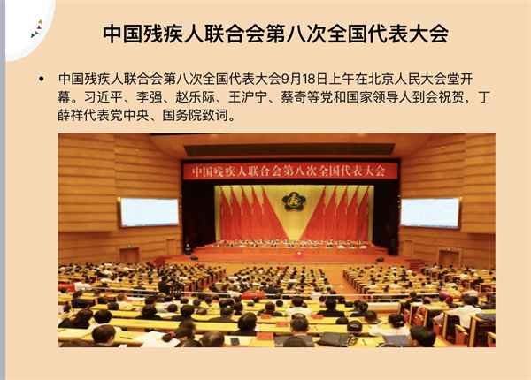 在九月於首都北京召開《中國殘疾人聯合會第八次全國代表大會》,在會內引述新時代新征程中國特色殘疾人士事業,二十大描繪了以中國式現代化全面推進強強建設、民族復興的宏偉藍圖、對完善殘疾人社會保障制度和關愛服務體系、促進殘疾人事業全面發展提出了明確要求。在中國式現代化進程中促進殘疾人事業全面發展,不斷創造殘疾人更加幸福美好的生活。特區政府積極落實康復網十年規劃,在國家大力發展殘疾事業的同時,回顧過去十年,在一國兩制下,透過國家的支持,特區政府積極落實《2016至2025年康復服務十年規劃》,亦讓特區殘疾事業有了良好的發展。
