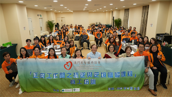 澳門展智服務協會為增進員工團隊凝聚力,於十八日在勵庭海景酒店舉辦“正向工作間之抗逆與逆境職能課程”員工培訓,邀得香港資深培訓經驗導師吳忠泰主講,帶領員工重新思考工作間定義及認識自我,透過解難遊戲建構團隊的合作意識。該會理事代表及員工共七十四人參與,得到澳門基金會及澳門商業銀行贊助。