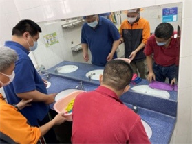 | 學員按導師的口令,一步步行事,一同合作處理清潔用具。 |