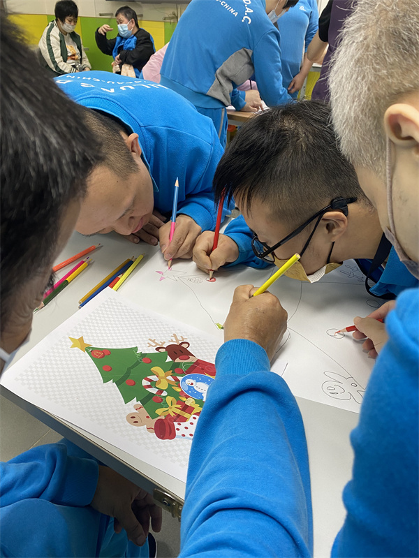 臨近聖誕節,中心藉着聖誕節為服務使用者安排團康活動,加強服務使用者之間的友誼及團結合作精神,開心歡度迎聖誕。當日活動內容十分精彩,服務使用者們一起玩小遊戲,第一個遊戲為釣魚遊戲,通過魚杆和磁石,訓練服務使用者手眼協調能力,將印有不同分數的聖誕相關飾物釣上來,當中有輕有重,有易有難,服務使用者們樂此不疲。第二個遊戲為合作性遊戲,訓練彼此之間的默契,一同繪畫聖誕樹,場面熱鬧愉快,充滿歡樂的笑聲。同時,中心感謝善心人士當天贊助膳食,讓服務使用者有豐盛的膳食及糕點,讓大家留下美好回憶。