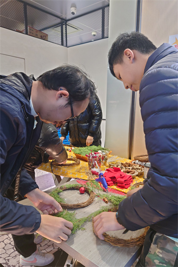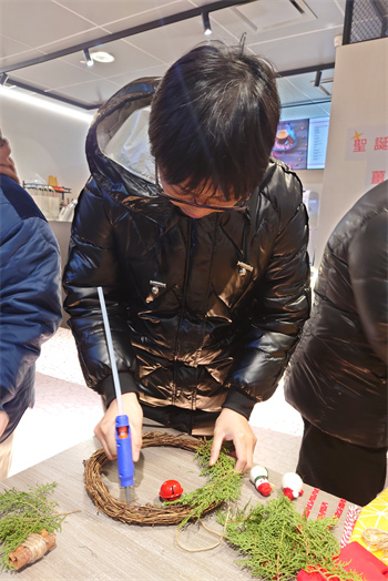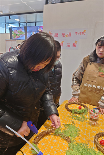 澳門展智服務協會屬下心明治小食店於12月23日組織學員參與白鶴堂及1999PortCafe聯合舉辦的聖誕花環工作坊,學員都紛紛發揮創意,在導師及義工的協助下學習使用乾花、乾果枝、塑料及布藝飾物等材料,一起製作獨一無二且富有聖誕氣氛的節日花環,感受節日文化。