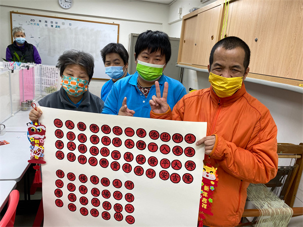 農曆新年是一年最重要的節日,中心除了佈置環境營造新春氛圍外,早前亦舉辧新春慶祝會,讓學員提前感受新年氣氛,迎接福氣滿滿的一年。活動上,學員透過貼揮春的遊戲尋找、認識常見及正確的四字揮春,更在職員的指導下製作賀年手作掛飾,完成後帶回家,為家中增添節日氣氛。