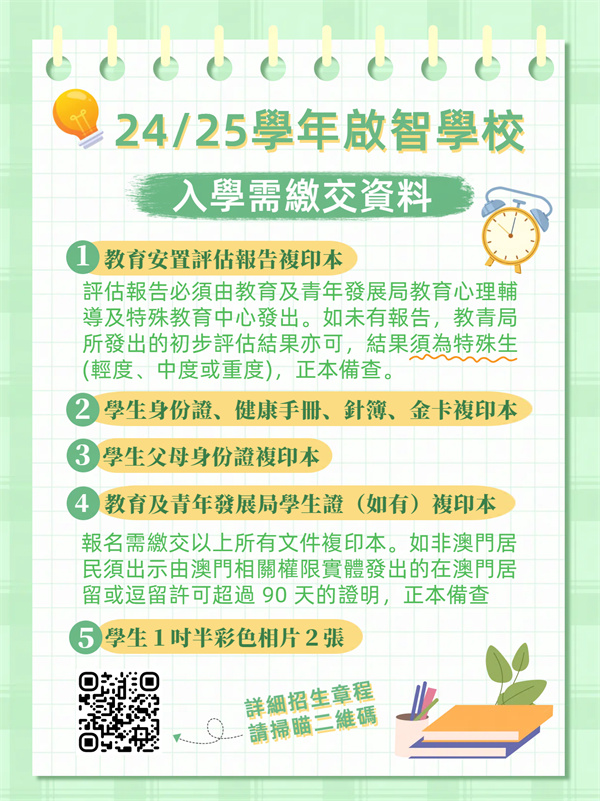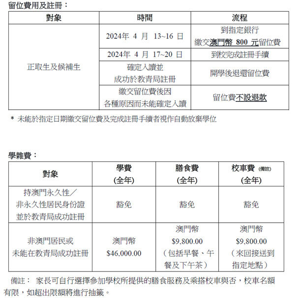 學校現將於 2024 年 3 月 1 日起接受新生報名,詳情如下: