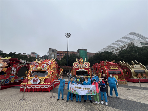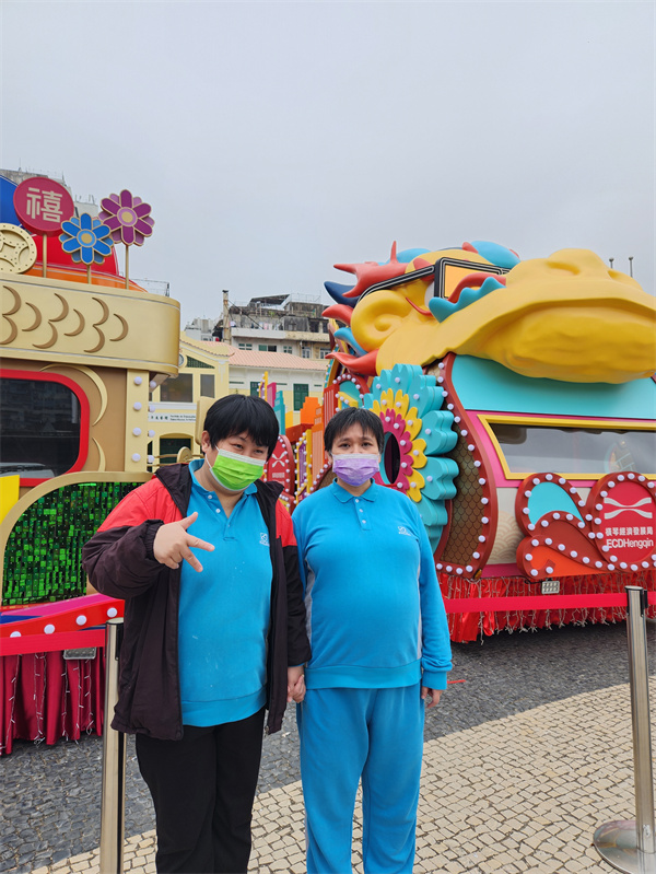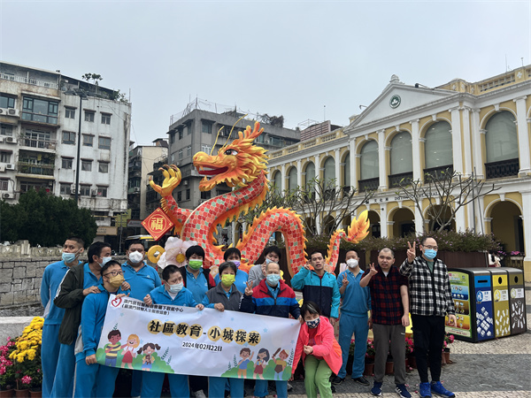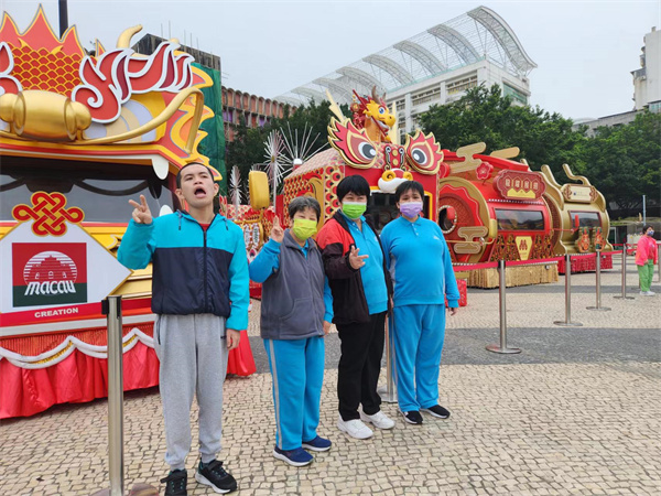 早前,塔石廣場擺放了農曆新年巡遊的花車,於是中心帶同學員近距離欣賞及拍照留念。在觀賞學習的過程中,學員看到花車的顏色雖然以紅色為主,但亦有金、銀、黃、藍、綠等顏色作點綴。適逢今年是龍年,每部花車除帶有「龍」的元素外,學員亦留意到花車上有金蓮花、獅頭、大笨鐘、祥雲、銅錢等的設計細節。活動除擴闊學員的空間視野,亦期望提高其學習探索的動力。