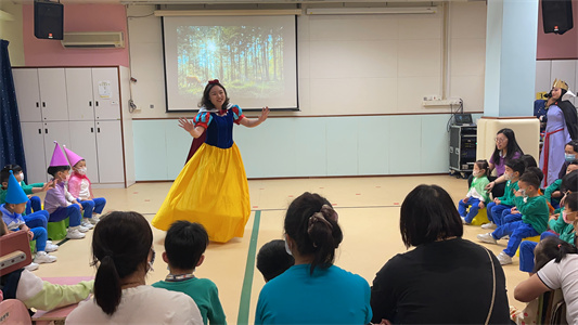 本年方案教學以級為單位,每級均以不一樣的方式呈現。K3級以走進童話世界為主軸,每班選取適合班級的故事進行方案教學,分有白雪公主、糖果屋、小紅帽;K2級則選擇《小紅帽》為主題,透過這個故事讓每位學生都能由淺至深的了解到除了故事內容外,還有由故事中如何帶出日常生活中會遇見的情況,例如:遇到陌生人的處理方式、交通安全等;而K1級則選擇《白雪公主》為主題,以話劇的方式為學生帶來不一樣的學習體驗,在設計話劇時特意加入不同互動性的元素讓學生對這個故事有更深的了解。整個「白雪公主」話劇由老師扮演白雪公主、巫婆及侍衞,而小矮人則由學生扮演,過程中透過唱歌、遊戲及不同形式的互動,讓學生生動地了解故事內容外,亦期望帶出「小心陌生人」、「不可接受陌生人食物或禮物」的訊息,