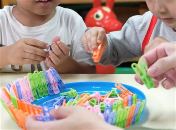 夾子的選擇上,以鬆一些的讓孩子來練習,等到打開夾子的能力更為靈活流暢後,再改為緊一些的夾子,加強訓練手指頭的力氣。