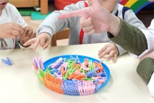 遊戲說明:「夾」的動作需要有力的手指,穩定的抓握衣夾、鑷子、筷子等, 有力的夾取物品。運用指頭動作,可以精進孩子手部肌肉的靈活度,培養協調性和專注力,也為將來的寫、讀、算能力預做預備。