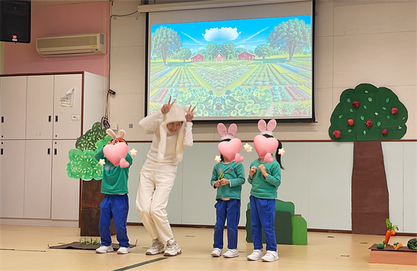 2023/2024學年啟智學校的校本方案教學活動,以中國成語故事為主題,其中有五班選取了《守株待兔》作為軸心,透過說故事、體驗活動等,讓學生對《守株待兔》有所了解,而其中教師亦主演了一場師生互動話劇,過程中學生除了觀看演出,還參與在互動中,包括肢體律動、觀察和協助記錄兩位農夫一週的工作、以及協助農夫收成農作物等活動,活動中學生表現積極主動,十分投入在話劇中。
