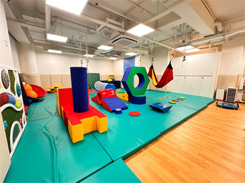 啟智早期訓練中心的職業治療室,安裝了全新的感統懸吊系統,可以讓治療師更好地設計多樣化的感覺統合遊戲,讓孩子在執行遊戲時有一個更佳的治療環境。