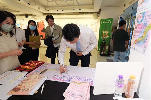 展智服務協會理事高嘉麗表示,今年適逢雙慶之年,又是中國人喜歡的龍年,故組織學員以此為主題進行藝術創作,讓學員透過創作參與社會。該會為非牟利社會服務機構,致力為有成長發展及智力障礙的學員提供專業的教育、訓練和輔導,同時支援其家庭。是次展出該會學員多件不同類型作品,以及有關填色比賽得獎作品,冀讓更多居民了解有成長發展及智力障礙人士的藝術創作。