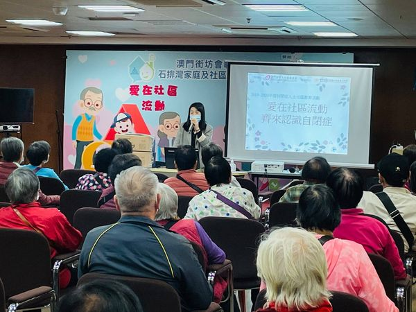 由澳門社會工作局贊助,澳門弱智人士服務協會主辦的2019-2020年度自閉症人士社區教育活動,主題為「愛在社區流動」,期望在不同社區中心透過舉行講座進行宣傳推廣,增加社區人士對自閉症的認識,共建共融社會。講座主要系介紹自閉症的知識、互動遊戲和欣賞自閉症微電影。感謝邀請我們到中心進行演講的機構~