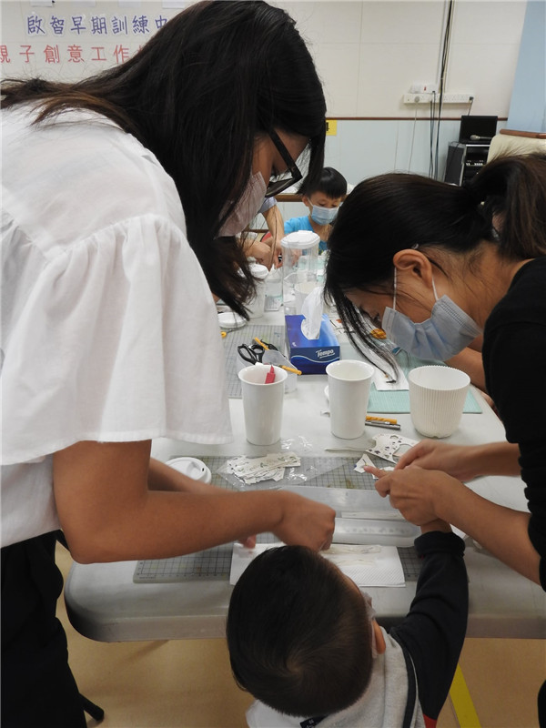 啟智早期訓練中心於10月10日舉行<親子創意工作坊 - 馬克杯>活動,是次活動邀請了「樂陶藝術中心」KERRY導師及助教,為家長和孩子們進行講解及示範。來自日本,風摩萬千的日本皇家陶瓷拼貼,只要選好日本進口的瓷器專用貼紙,花小小心思,就可以拼貼出心目中理想和属于自己的馬克杯,而且重點是不需要畫畫好叻都可以設計得好靚!家長和孩子們都十分用心地創作作品,過程中積極投入,是次活動為家長和孩子們提供了親子合作的機會和創作體驗。是次活動由社會工作局資助。