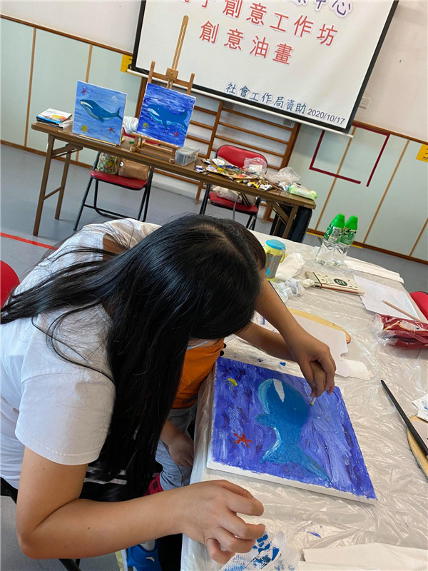 活動中,每組家庭都相當投入,家長和孩子非常用心創作屬於自己油畫,享受繪畫的樂趣。是次活動有社會工作局資助。