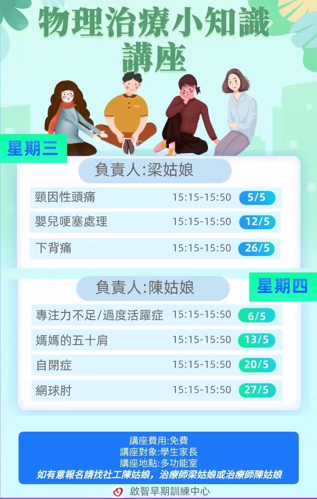 有意報名請致電啟智早期訓練中心 陳姑娘/梁姑娘 28522640