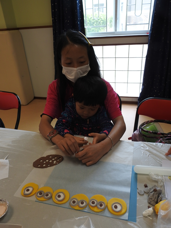幼兒和家長合力制作杯子蛋糕上的翻糖裝飾