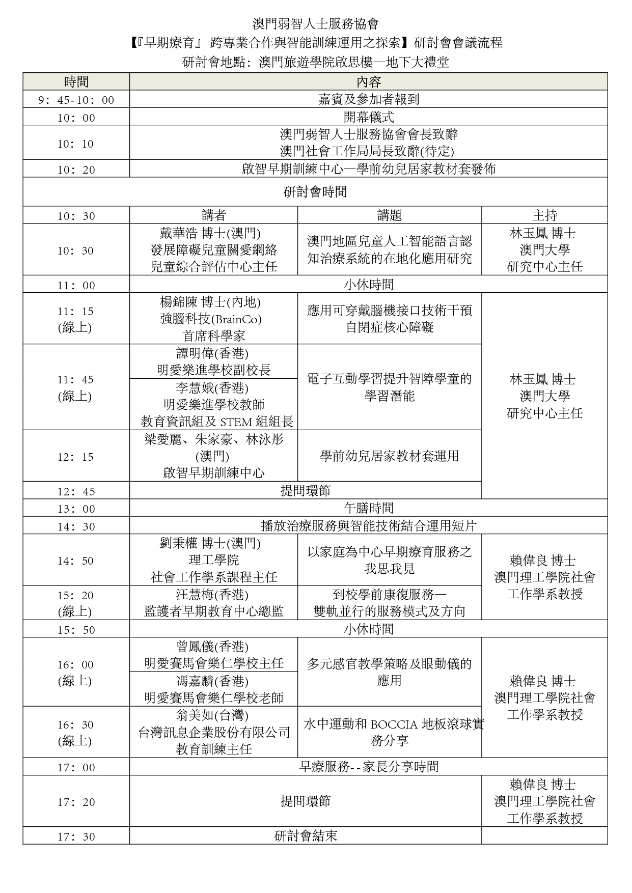 活動地點:澳門旅遊學院啟思樓地下大禮堂