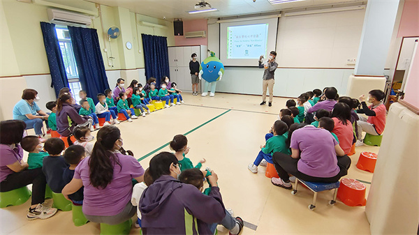 為讓學童學習珍惜食物,節省能源,啟智學校特意邀請環境保護局及其吉祥物地球先生來校進行講座。
