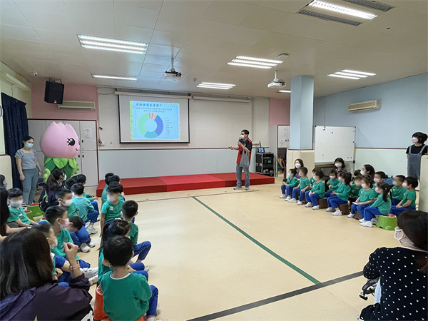 為讓學童學習如何正確回收,加深環保意識,啟智學校特意邀請環境保護局來校進行講座。