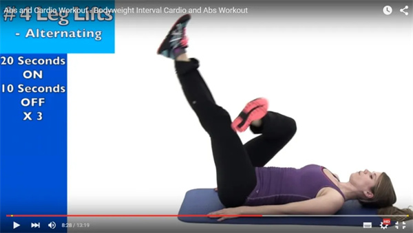 交替抬腿-20秒左右腳交換抬腿,10秒休息,共三回合