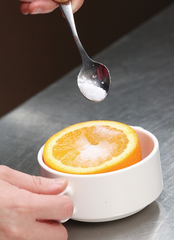 ▲ 在橙肉上撒鹽。
