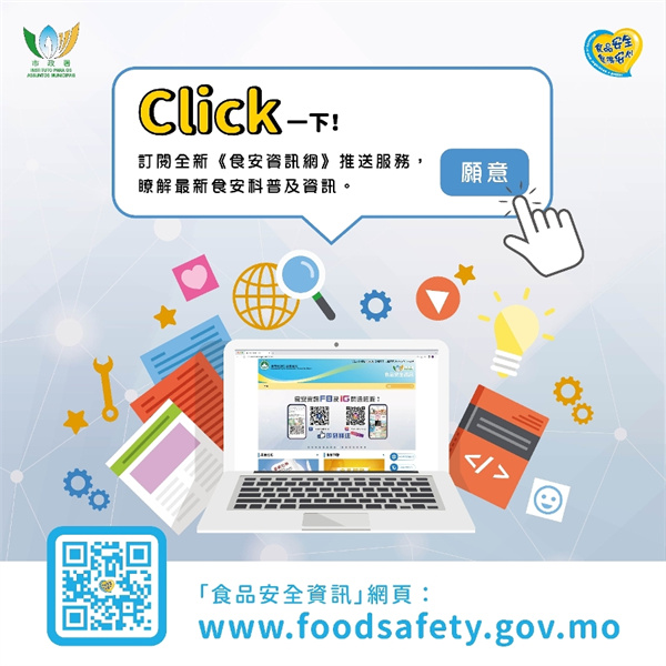 為便利公眾掌握各項最新食安公佈、食品預警、科普資訊、食安教育及培訓等資訊,“食品安全資訊網"(www.foodsafety.gov.mo)主頁之桌面及流動版界面同步作出優化及更新,改善主頁分類項目並以圖文方式顯示上述資訊。以更簡潔的界面、清晰的信息分類,讓用戶能有效、迅速地查閱最新消息;同時,桌面版或安卓手機版用戶可透過訂閱“食品安全資訊網"之“網頁訊息推送"功能,接收最新食安資訊推播,及時掌握最新食安動態。