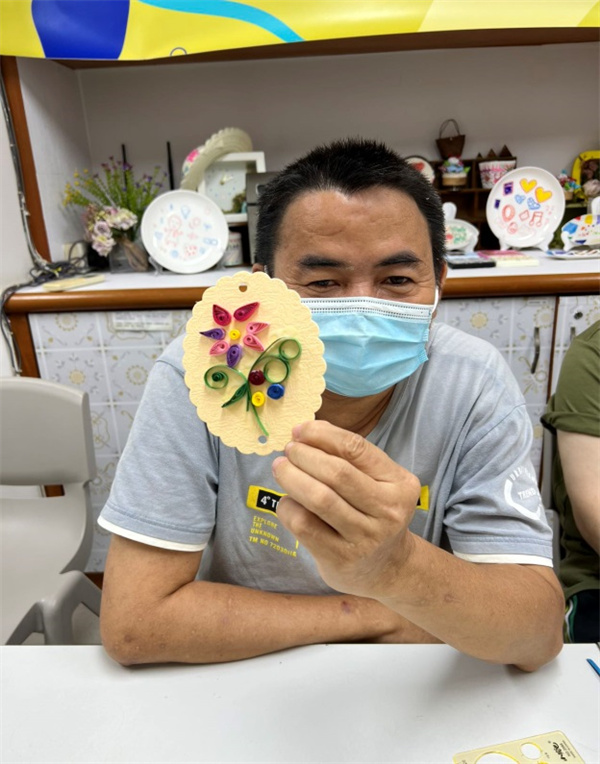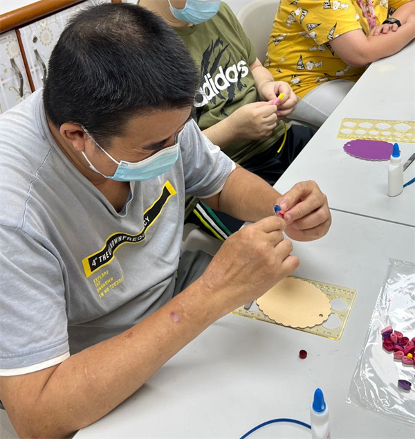 「衍紙」是一種簡單而實用的生活藝術,運用卷、捏、拼貼組合完成。常被運用於卡片、包裝裝飾、裝飾畫、裝飾品等。通過幾堂課的學習發現每位服務使用者的學習能力都有所不同,有部份服務使用者比較難掌握製作的要求,需要導師從旁協助。但亦發現有部份服務使用者是能掌握技巧,如:小明(化名)在製作衍紙時所需的手眼協調及專注力上都能達到一定的要求,而製作出來的成品亦不錯,印證了只要給予時間和機會,讓服務使用者作更多方面的嘗試及訓練,就能發揮個人的能力。