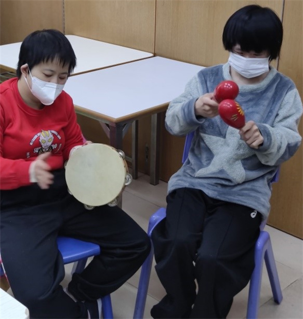 讓學員通過音樂來放鬆,嘗試表達情感,釋放日常的負面情緒;又可從用樂器合作跟隨音樂一起打節拍,來促進溝通、增進人際社交的互動和增加他們的注意力;此外,在唱歌時,也能獲得自信心和成功感。