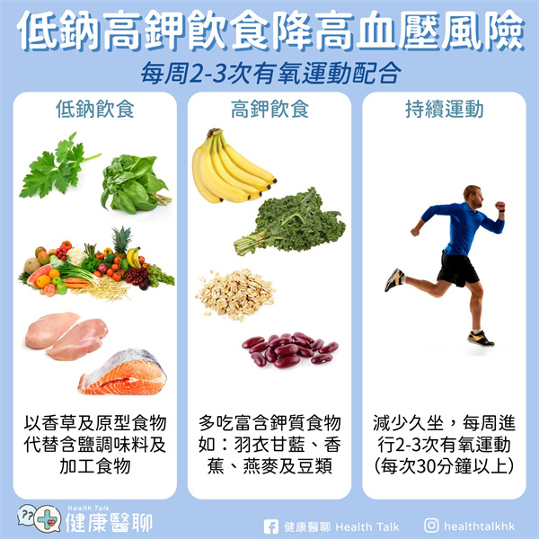 想令血壓保持穩定,可以從飲食和運動兩大方面入手。