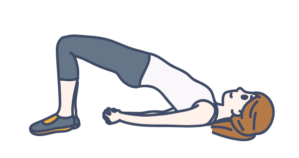 縮小腹運動:平躺在床上,雙腳屈膝,緊縮下腹部及臀部,感覺像在縮小腹一樣,維持幾秒後放鬆。 縮小腹運動:平躺在床上,雙腳屈膝,緊縮下腹部及臀部,抬高臀部,維持幾秒後放下。 單側抱膝運動:平躺在床上,雙腳屈膝、緊縮下腹部及臀部,抬起一腿,膝蓋貼緊胸前,兩手合抱膝蓋。