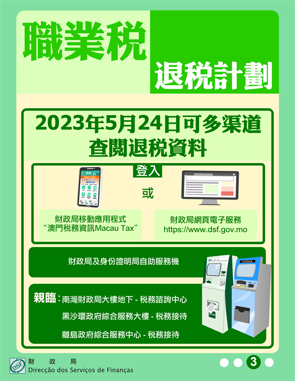 財政局提供以下多個渠道便利納稅人查閱其個人職業稅退稅資料:
