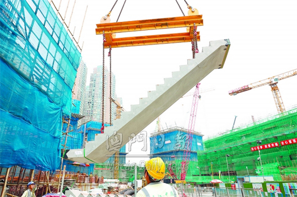 逾一千條鋼筋混凝土樓梯預先在工廠建造,運送至工地直接裝配。