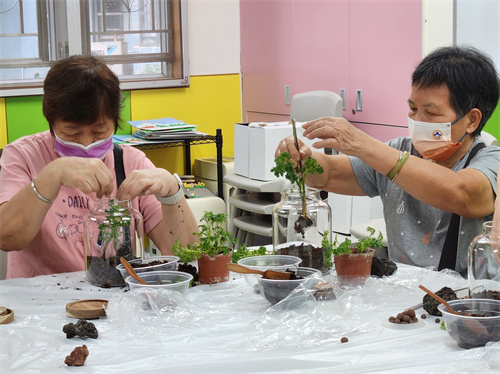 今年5月至8月,中心為家長開辦「我有我空間」家長支援小組,期望為家長提供獨處空間,透過不同的藝術媒介,促進身、心、靈健康,尋找合適的方式紓緩壓力,提升個人自信心,小組經費得到社工局贊助。家長支援小組分成:和諧粉彩、自調香水、玻璃拼接星球燈和小樹系列生態瓶4個單元,家長們走出舒適圈,主動向導師發問、協助,學習新技能的同時亦增強了個人自信心。創作時,亦嘗試加入自己的個人想法,願意自豪地展示、欣賞自己的製成品。家長間互相幫助和鼓勵,每次參與工作坊都嘗試突破、挑戰自己,把生活重心、關注點多放在自己身上。