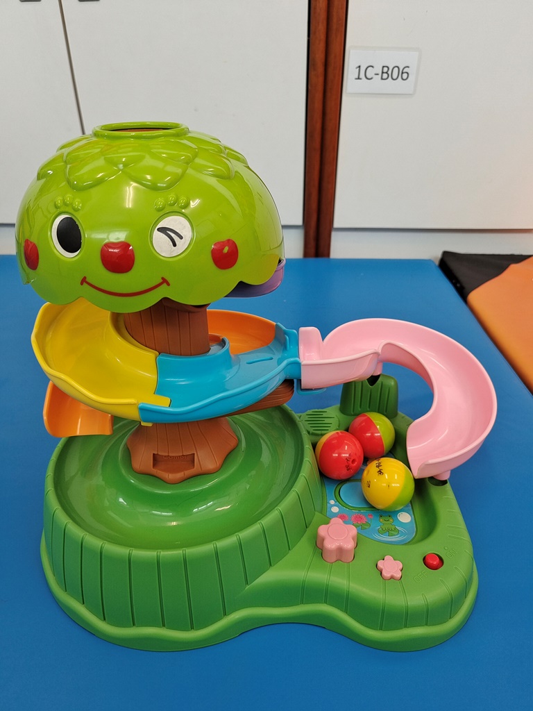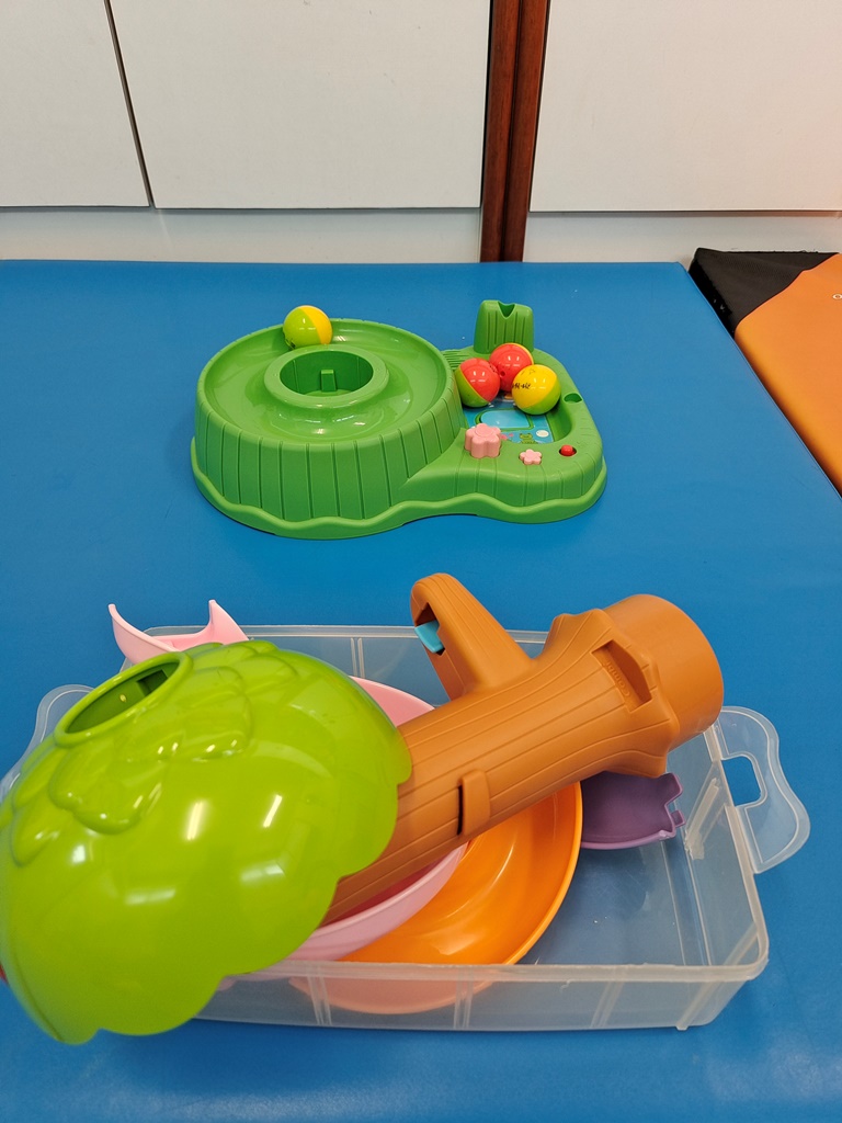 在日常的職業治療中,我們經常會用到球狀玩具。球狀玩具除了包含訓練抓握能力的球狀抓握,也包含視覺的訓練、上肢動作控制、手眼協調、雙手合作運用、社會技巧的訓練。遊戲過程中,讓學童把球放到不同高度的軌道滑下球、把立體球狀玩具放在學童的左邊、右邊,就可以訓練學童的上肢向左、向右、抬高上臂的動作控制。