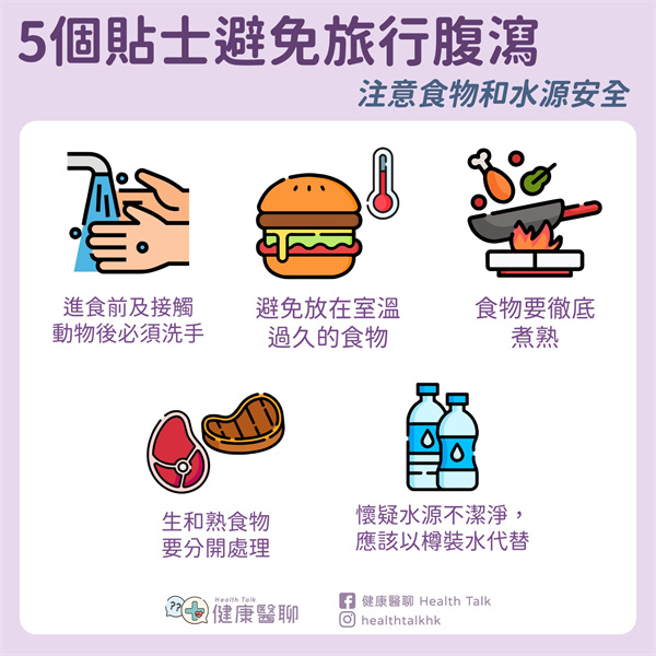 預防勝於治療,想避免因為腹瀉而影響行程和興致,不妨參考世界衛生組織的《旅行者食品安全指南》: