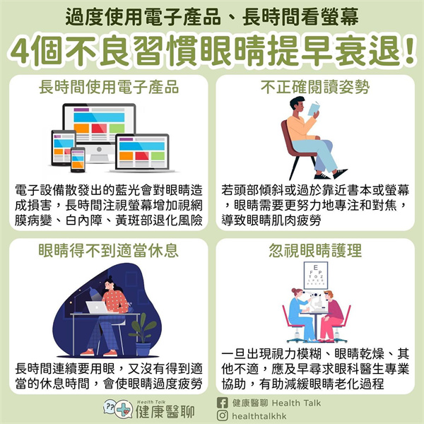 以下是一些會導致眼睛提早衰退的不良習慣: