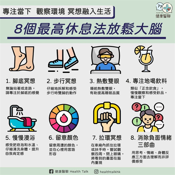 「大腦疲勞」不是單靠睡眠就可以消除的,反而是要透過一些真正讓大腦放鬆的方法在可以改善。日本精神科醫生川野泰周就提倡一些「最高休息法」,將正念和冥想融入生活,只需要做3分鐘,就可以幫助大腦放鬆,改善身心狀態。如果你感到長期感到疲勞,不妨一試: